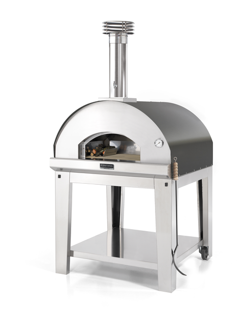 Fontana Marinara Pizza-Holzbackofen, 80x80cm Backfläche, Anthrazit, inkl. Unterwagen