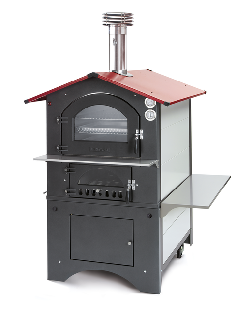 Der Ofen ist aus bestem Edelstahl gefertigt und verfügt über eine Anthrazitlackierung mit rotem Dach. Der Garraum des Holzofens hat 3 Ebenen und ist mit Doppelbelüftung und Beleuchtung ausgestattet. Die Kochkammer mit traditioneller gewölbter Form ermöglicht eine gleichmäßige Verteilung der Hitze, sodass die Gerichte optimal gegart werden können. Die Doppelbelüftung unterstützt die Verbreitung der Hitze in der Kochkammer und trägt dazu bei, das Essen trockener und knuspriger zu garen.